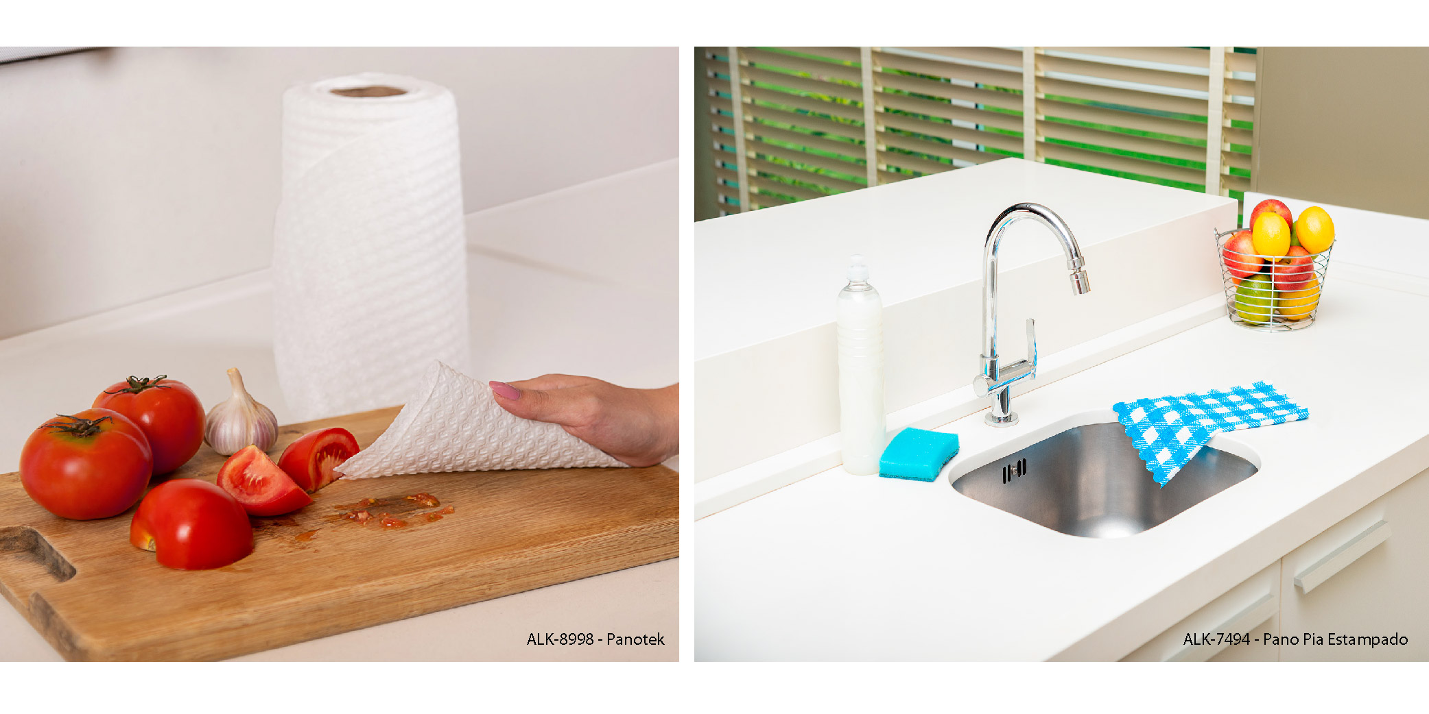 Um grande aliado que você encontra na sua cozinha é o Panotek. Sua textura em 3D facilita o agarrar das sujeiras. Além de substituir o Papel Toalha, o Panotek é ideal para realizar a limpeza de pias, lixeiras e superfícies em geral. O Pano Pia Alklin também é uma excelente solução para a limpeza de pias, copas e outras superfícies da cozinha que necessitam de cuidados diários. Sua alta absorção e maciez proporcionam um excelente desempenho, que mantém a cozinha sempre limpa e seca.
